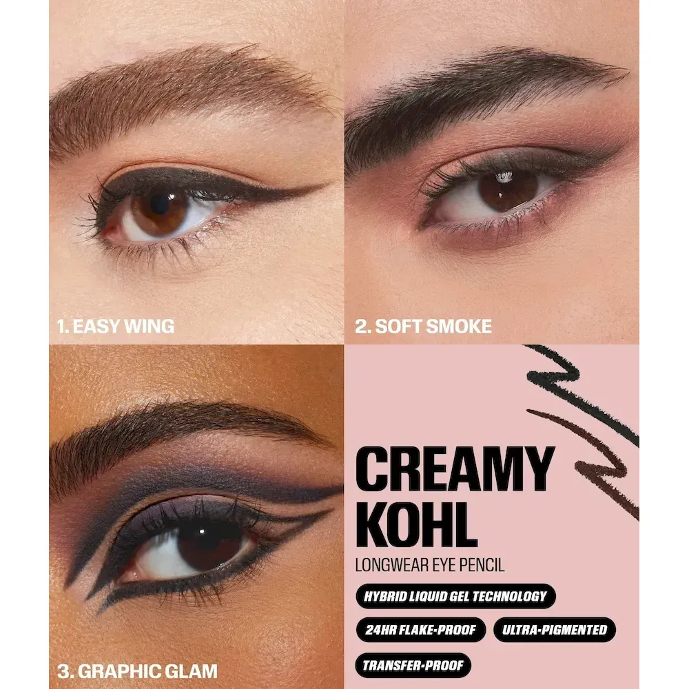 Whether you love tight lines, drawing on soft flicks, smudging, or creating fun graphic shapes with your liner, our Creamy Kohl Longwear Eye Pencil will make it happen smoothly and effortlessly! Our ultra-creamy formula gives you time to smudge and smoke your liner before it’s locked in. Also totally transfer-proof!