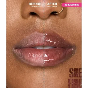 - Apply FAUX FILLER Gloss lip gloss to the center of the lips.