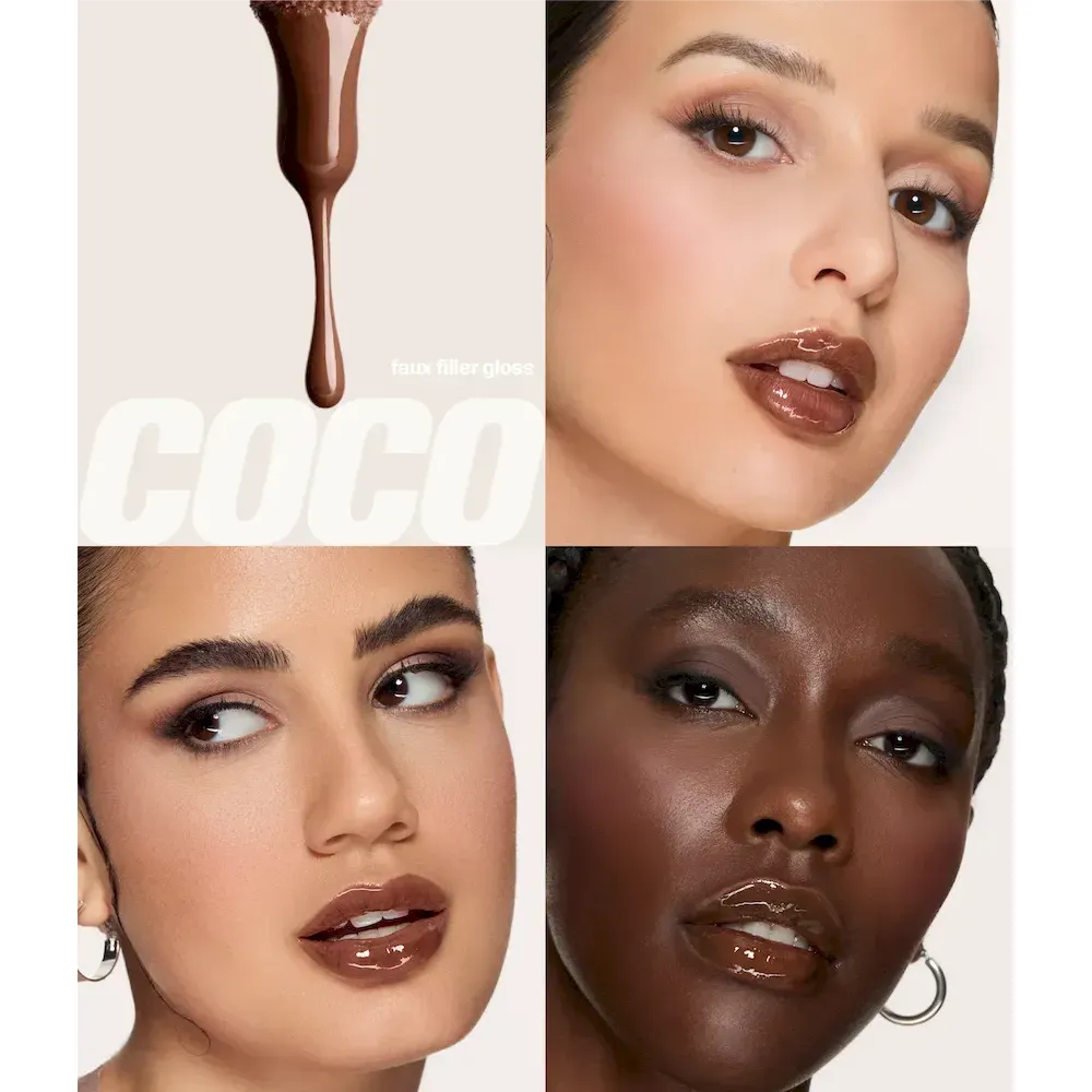 Faux Filler Lip Gloss – Coco: OCTYLDODECANOL, HYDROGENATED POLYISOBUTENE, BIS-DIGLYCERYL POLYACYLADIPATE-2, DIISOSTEARYL MALATE, VP/EICOSENE COPOLYMER, DIISOPROPYL ADIPATE, C20-40 ALCOHOLS, VP/HEXADECENE COPOLYMER, COCOYL HYDROLYZED COLLAGEN, ETHYLCELLULOSE, SILICA DIMETHYL SILYLATE, FLAVOR/AROMA, ETHYL VANILLIN, ETHYLENE/PROPYLENE/STYRENE COPOLYMER, BUTYLENE/ETHYLENE/STYRENE COPOLYMER, PENTAERYTHRITYL TETRA-DI-T-BUTYL HYDROXYHYDROCINNAMATE, BHT. MAY CONTAIN (+/-) IRON OXIDES/CI 77491, IRON OXIDES/CI 77492, IRON OXIDES/CI 77499, TITANIUM DIOXIDE/CI 77891, RED 6 LAKE/CI 15850, RED 7 LAKE/CI 15850, RED 28 LAKE/CI 45410, RED 40 LAKE/CI 16035, BLUE 1 LAKE/CI 42090, MANGANESE VIOLET/CI 77742, YELLOW 5 LAKE/CI 19140.