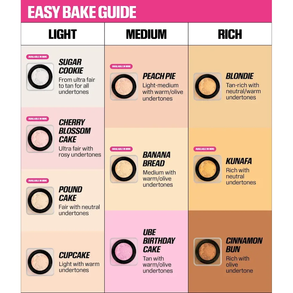 Easy Bake Loose Powder: The Huda Beauty Easy Bake Loose Powders are inspired by Huda’s strong belief that the technique of baking is a key step to a flawless finish while ensuring long-lasting, melt-proof makeup. This extremely light and silky texture blends seamlessly into the skin leaving it matte with a hint of sheen, for a luminous finish that controls shine throughout the day. The powders work to subtly color correct and highlight different contours of the face, leaving a translucent veil of color on your skin. The Easy Bake powder comes in 9 shades curated for all skin tones.